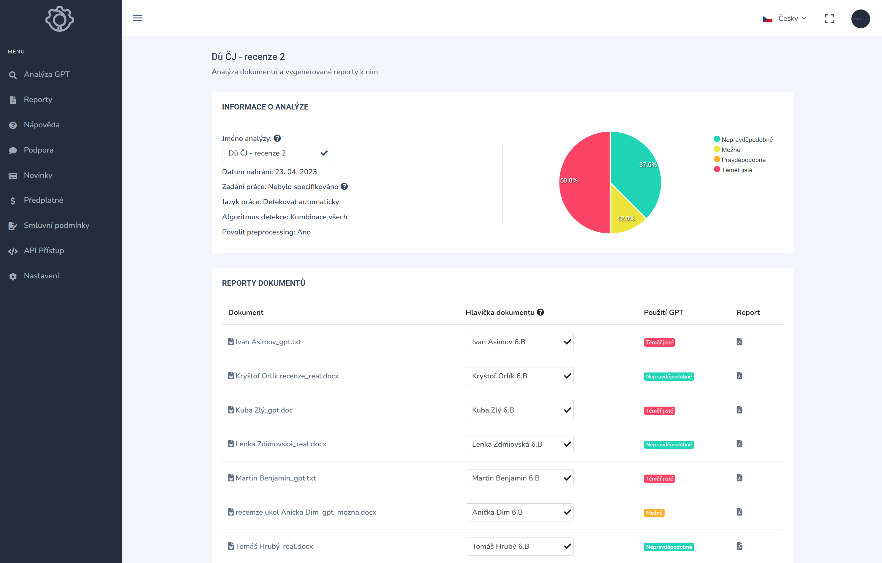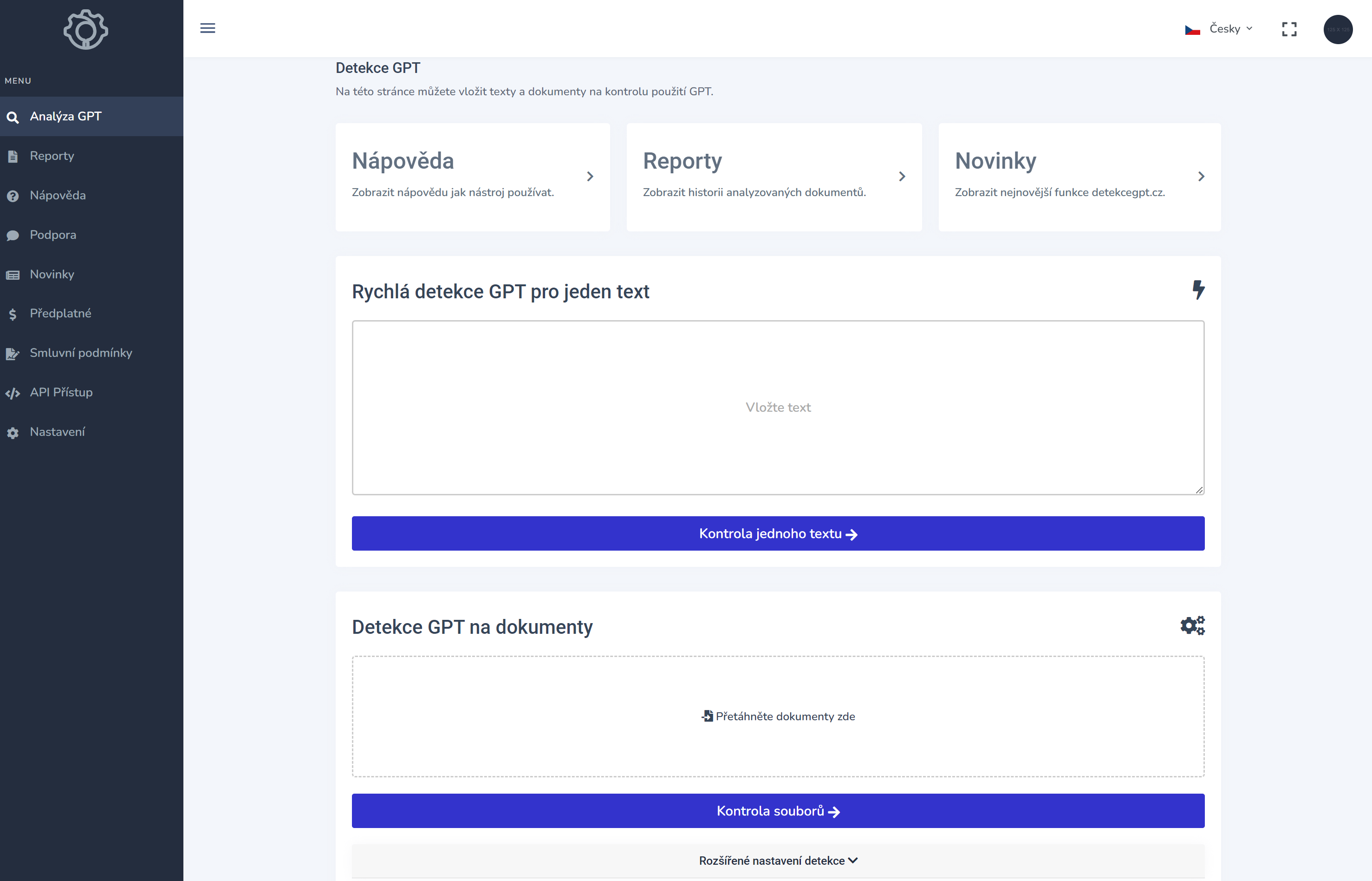Nutzen Sie das volle Potenzial von DetekceGPT.cz mit der Vollversion unseres Tools und sichern Sie die akademische Integrität Ihrer Einrichtung.